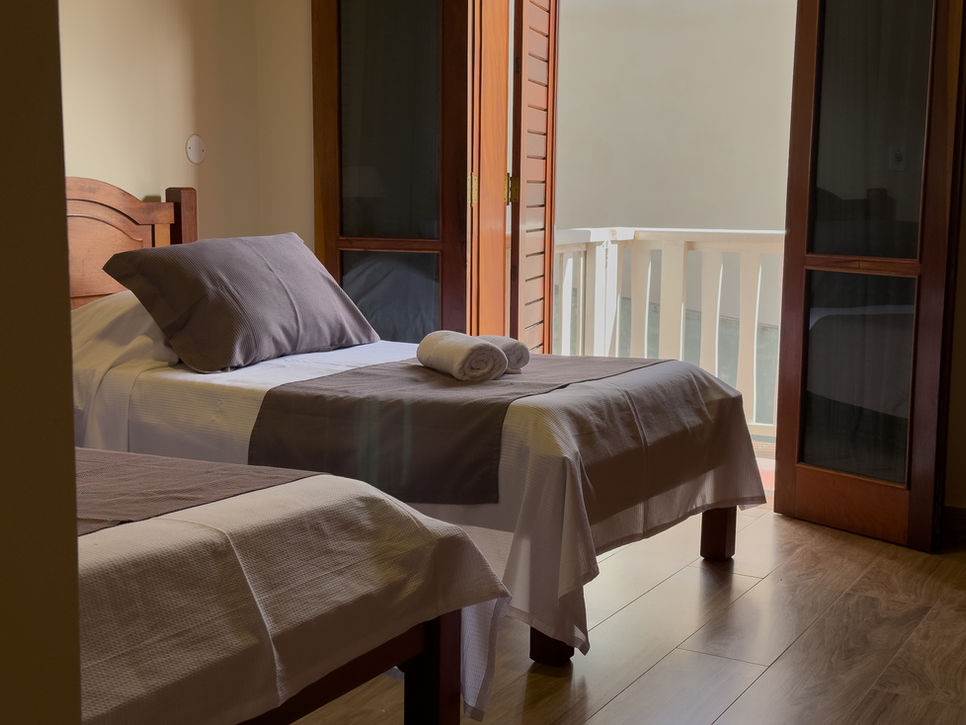 Acomodação localizada no prédio anexo (chalé). Possui 2 quartos conjugados, sendo um quarto para casal e outro quarto do lado com 2 camas de solteiro. Ideal para famílias que buscam uma acomodação confortável e um ótimo custo benefício.